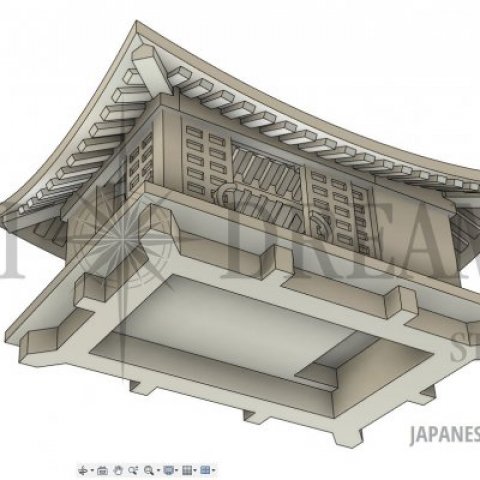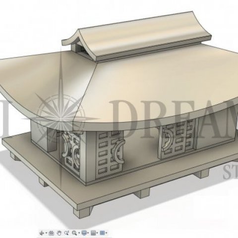 Numa primeira abordagem, seguimos o mesmo método que aplicámos na “Casa Japonesa Metálica”, onde aplicámos um desenho que representasse as principais características da Arquitetura Tradicional Japonesa, no campo. Numa segunda fase, foi feito o seu modelo 3D aplicando programas paramétricos específicos para modelação 3D, e que incluem o Fusion e AutoCAD, entre outros, seguindo-se a sua impressão numa impressora 3D para produzir um modelo 3D, em cortiça.