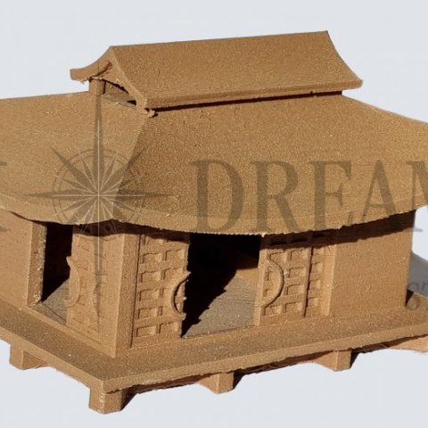 Apresentamos um novo modelo impresso em 3D, em que temos trabalhado – a “Casa Japonesa em Cortiça” – semelhante ao modelo “Casa Japonesa Metálica”, em dedicação à Arquitetura Japonesa. Este modelo impresso em 3D é feito em cortiça, e foi desenhado e impresso em 3D pela 3D+Dreams, estabelecendo uma ligação das Novas Tecnologias com a Arquitetura. O Minimalismo é característico da Arquitetura Tradicional Japonesa, onde a cobertura ocupa um lugar de destaque, com bonitas formas curvas. Na verdade, o telhado curvo tem um significado e função simbólica na Cultura Japonesa, que é afastar as forças dos maus espíritos. As paredes, por outro lado, são finas e delicadas para permitir a entrada da luz, e por esta razão as Casas Japonesas são fortemente iluminadas no seu interior.