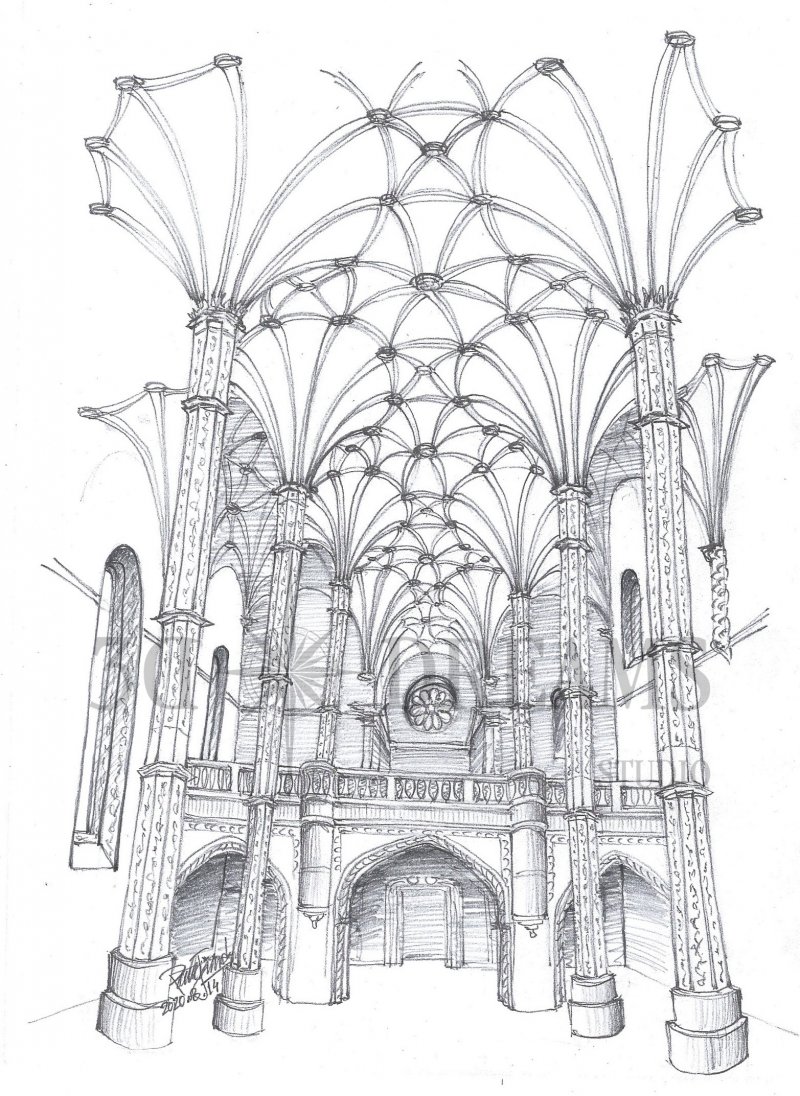 A maior parte das Igrejas têm tetos abobadados, típicos do método construtivo aplicado nos espaços sagrados, na Idade Média, mas é raro encontrar uma Igreja com várias abóbadas em forma de estrela, dispostas como um “leque”, com nervuras radiais. Estes elementos arquitetónicos tinham um significado especial, simbolizavam o Céu, o caminho para o Paraíso, e neste sentido o teto em abóbada representava tudo o que é celestial, o Cosmos. Outro símbolo associado ao teto abobadado é a sua ligação com tudo o que sagrado, entre a planta retangular da Igreja e as linhas curvas no topo, um símbolo da união entre a Terra e o Céu.
